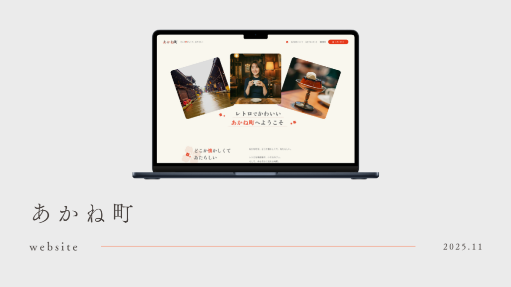 あかね町 miyama 3日前 2025.11 Figmaホームページデザイン制作時間:2週間 ターゲット 20-30代女性グループ・カップル コンセプト レトロ・かわいい・すっきりどこか懐かしいのにかわいい